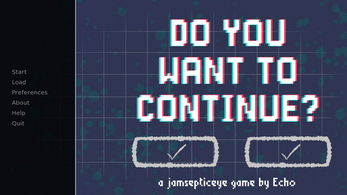 [ NOTE THAT THERE IS MUSIC, BOTH IN THE MENU AND IN-GAME. Ren’Py in browser apparently might be a little slow in getting it loaded. If it doesn’t start in a couple seconds, try going to Preferences and activate then deactivate Mute All. ]